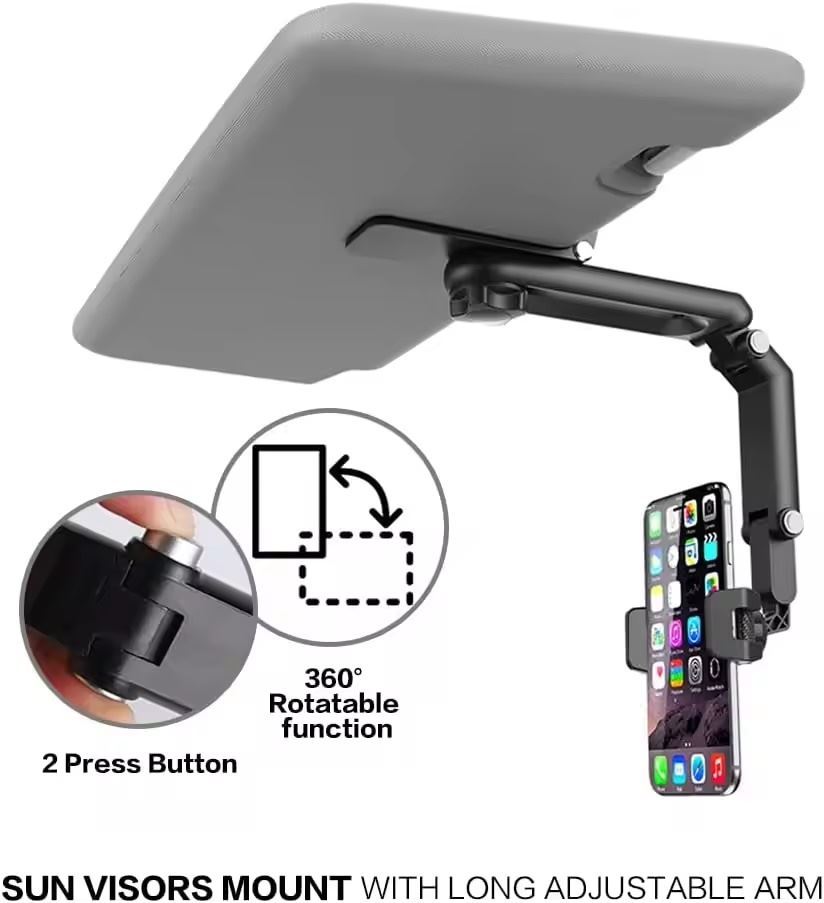 Easy to install, no tools required.Item Name: Sun Visor Phone Holder